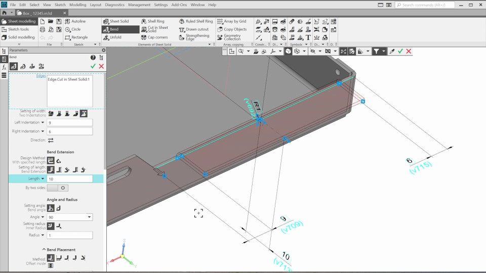 This course covers sheet metal part modeling in KOMPAS-3D. We'll learn fundamental sheet modeling principles by creating a box model using the "Bend" functionality, adding cuts and holes, and generating a drawing with a flat pattern view.