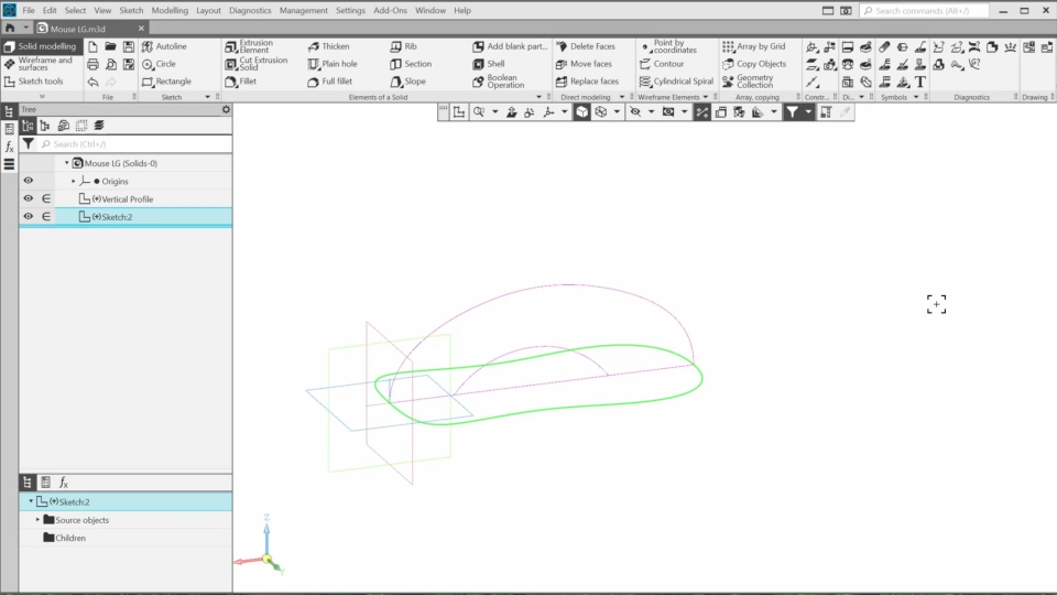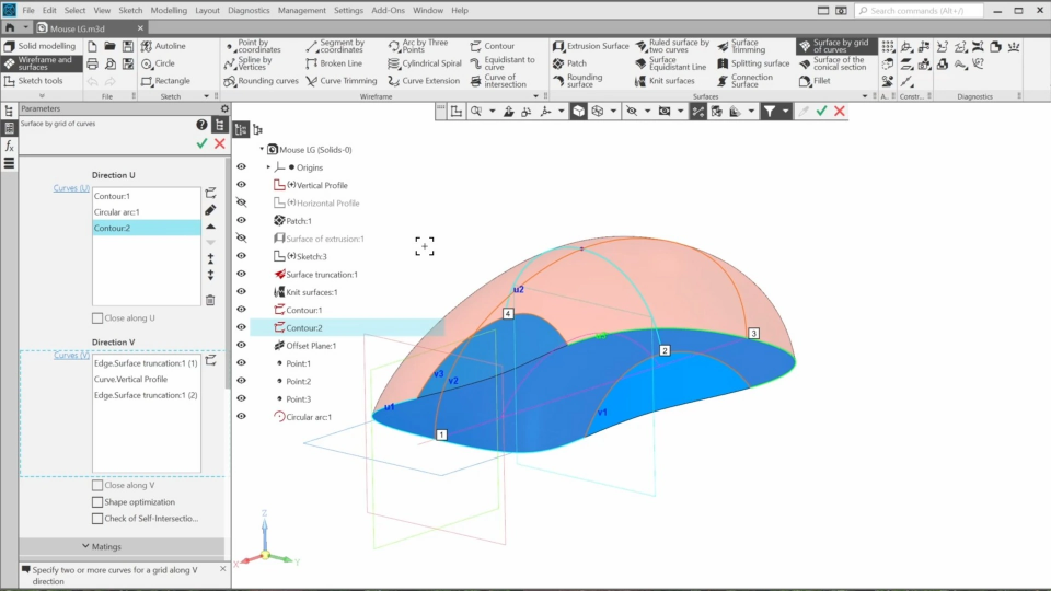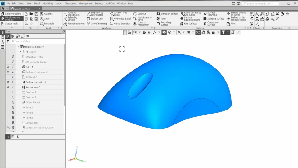 In this course, we will learn basic functionality designed for surface modeling. We will create layout geometry for a computer mouse and use commands such as “surface by grid of curves”, “extrusion surface”, “patch”, and others to form a complex surface.
