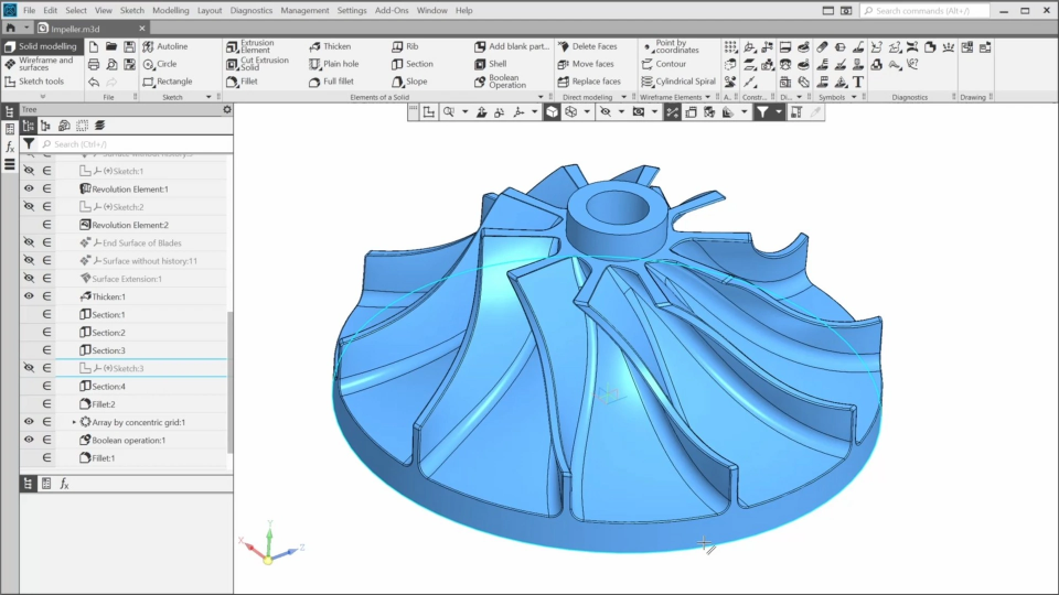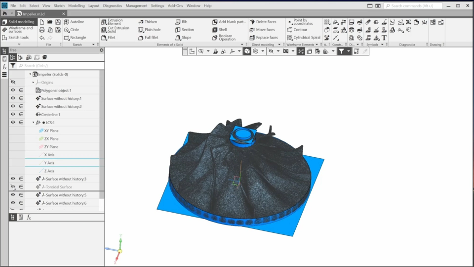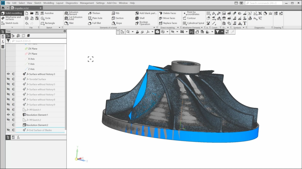 In this course, you’ll get acquainted with an approach to reverse engineering using KOMPAS-3D. You’ll learn which tools KOMPAS-3D provides for restoring a precise model based on a scanned model. To do this, we’ll open the scanned impeller model in KOMPAS and approximate its elements, allowing us to snap to them and create elements of the precise impeller model. We’ll control the approximation using the analysis tool. Finally, we’ll refine the model by adding standard elements such as chamfers and fillets.