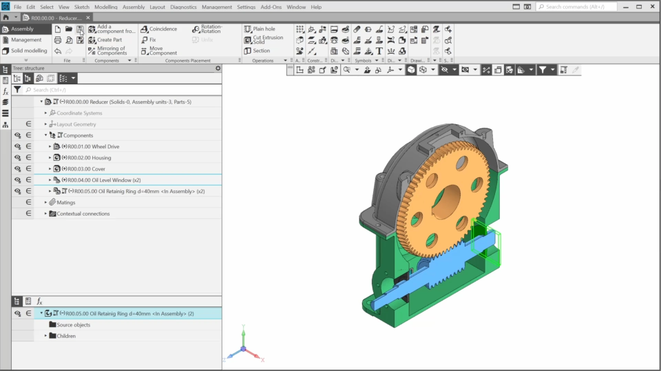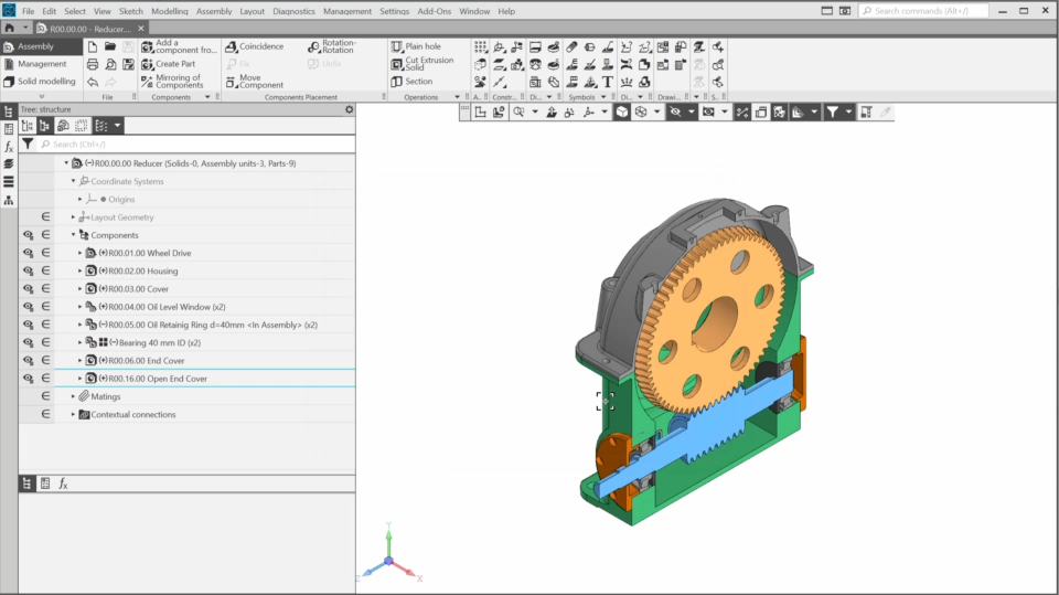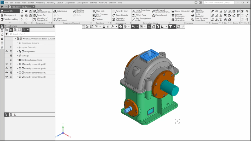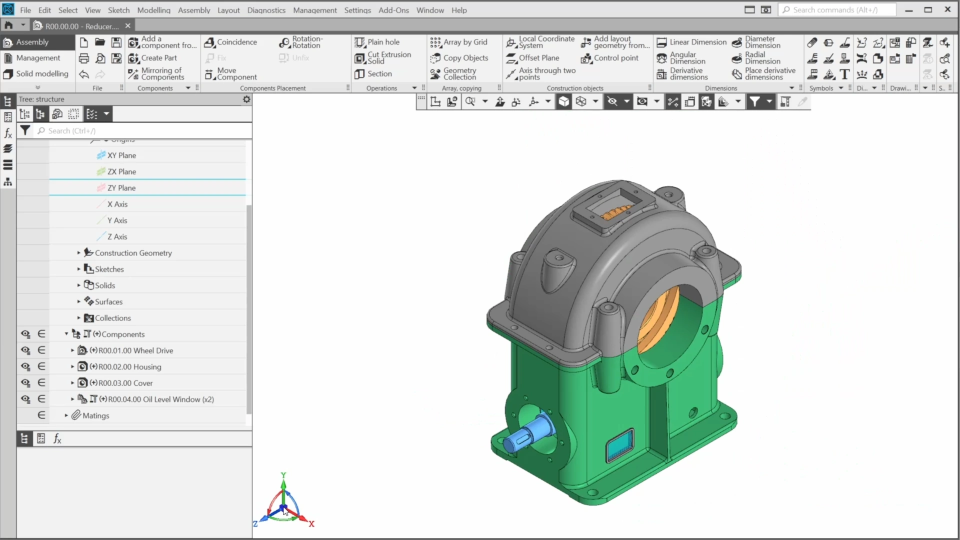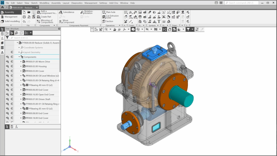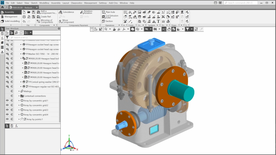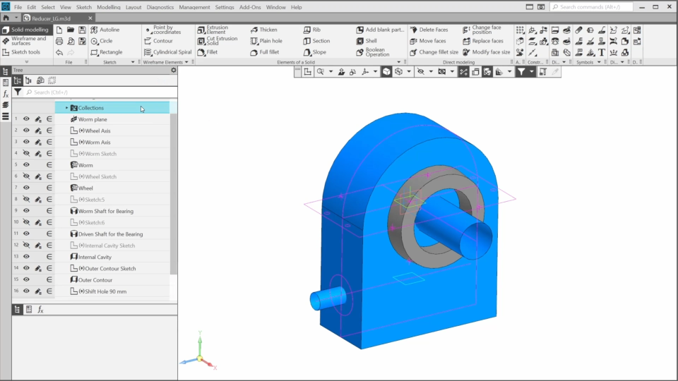 In the course, we’ll create the reducer from scratch. We’ll start with the layout geometry and then gradually create and add all the necessary components. Some components are ready-made. We’ll import some of the other components and use direct editing tools to modify them. The remaining reducer components will be created from scratch.